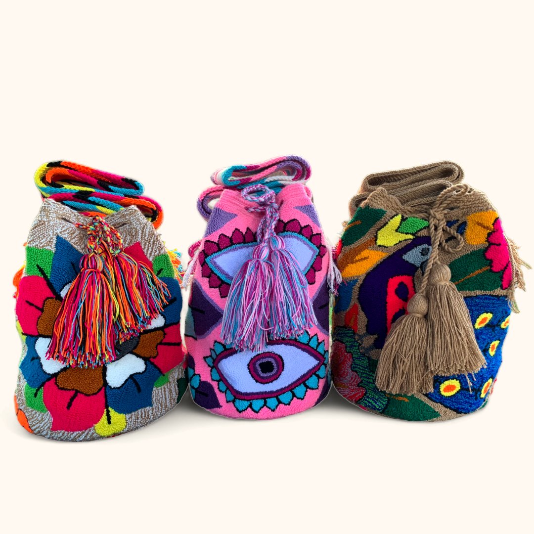 Vibrantly colored, handwoven Wayuu bags that reflect the rich culture and traditions...