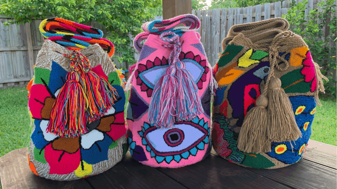 Vibrantly colored, handwoven Wayuu bags that reflect the rich culture and traditions...